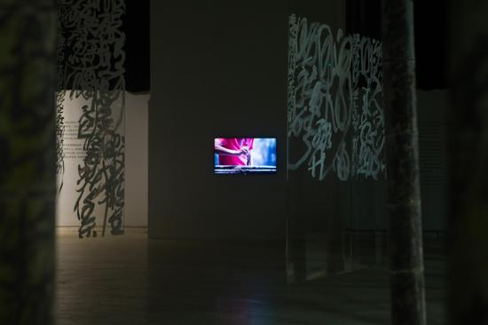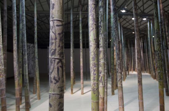 本次展览在展厅A将呈现王冬龄于201根竹子上书写的历代名家竹诗以及透明亚克力上的文本乱书。竹子作为书写媒材的本源形态与散布于空间中的墨书符号,联结了传统与当代。竹与书不断置换作品的内部与外部,在竹径中同是创作的场景及描写的内容,其特有视觉样式带来的侵入感,引导观众刷新从平面欣赏书法的体验,引发物之界限和物我定义的反思,其“在场性”(德语:Anwesenheit)得以显现。竹上书“竹”是一种具有“元绘画”(meta-picture)的实践,如同阿甘本(Giorgio Agamben)所说:“它必然首先言说语言本身。”悬浮在透明亚克力上的文本与竹竿上咏竹、题画竹的名篇于展厅互相重叠。展厅B首次呈现王冬龄的水墨抽象小稿及于杭州创作时期的竹上书写纪录片,此外,艺术家专为展墙量身定制创作的巨幅乱书(8.4 X 5.5m),上书竹林七贤稽康、阮籍的诗,也颇为壮观。