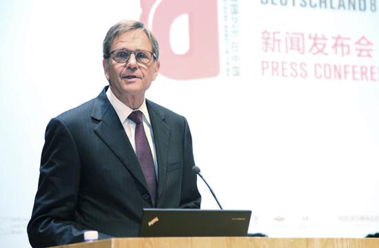 在发布会上,中国驻德大使史明德首先发表了致辞。他谈到:今年恰逢中德建交45周年,45年来中德两国关系有了长足的发展,双方政治互信加强,高层互访频繁,经济交往密切,文化交流日益增多。在庆祝建交45周年的框架下,双方的博物馆、艺术节和文化机构联合举办了系列文化活动,“德国8”也是其中的一个重要项目。