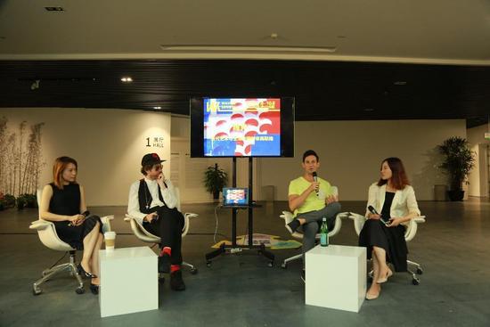 W ELENGTH跨界研讨会(左起:首席艺术赞助代表何颖女士,艺术家菲利普·考尔伯特(Philip Colbert)、乔纳森·罗森(Jonathan Rosen),W ELENGTH策展人周晗)