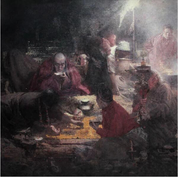徐悲鸿自从将现实主义带到中国,真不少挨吊杠(家乡方言,批评的意思)。但吊杠归吊杠,80多年过去了,又有多少画家不把它当看家的宝?才树新并没有随评委之愿将油画中国化,更像随徐悲鸿之愿在补西方美术史的课程,从现实主义向表现主义过渡,根还在现实主义上。但你别以为他就是个敢顶撞评委的人,看看他的题材吧,讨巧点在这里呢。