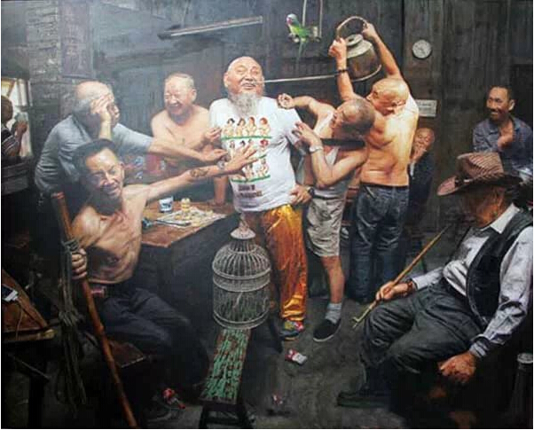 陈兄选照片很有一套,抓拍为主。本届展览在画照片方面和上一届比确实有所进步。一是人数增加了,但凡写实基本上都是;二是会掩盖了,做做机理什么的玩玩掩耳盗铃;三是起稿不用投影仪了,用微喷。不知这算不算油画中国化的套路之一?