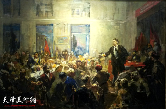 此次展出的是苏联上世纪下半叶美术家的创作,这些作品翻开了苏俄的英雄史、革命史及二战时期与侵略者殊死搏斗的历史画卷。走进“钱塘湾艺术馆”,仿佛置身于前苏联十月革命、卫国战争以及社会主义建设时期:从描绘革命领袖列宁在十月革命斗争前后的《列宁在芬兰》,到再现十月革命历史性时刻的《占领冬宫》,从表现卫国战争时期苏联人民浴血奋战的《胜利的战士》,到反映前苏联和平建设时期的《伏尔霍夫水电站建设》,再到苏联画家巴勃果夫的遗作《小护士》等等,为我们一页页翻开了俄罗斯的英雄史和革命史……