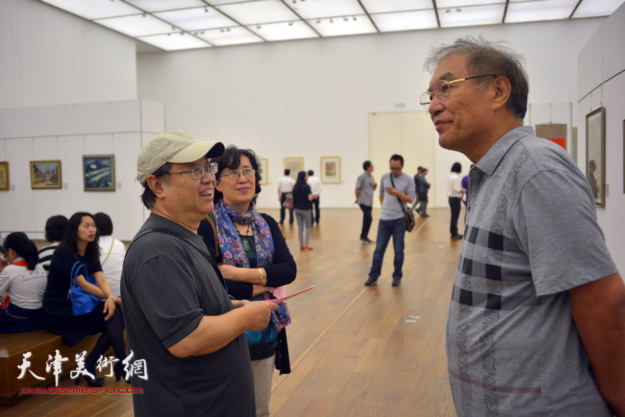 图为邓家驹与夫人徐礼娴和观众在画展现场。