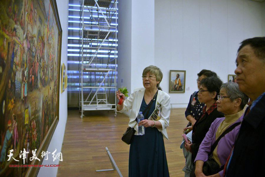 图为邓家驹夫人徐礼娴在为观众讲画。