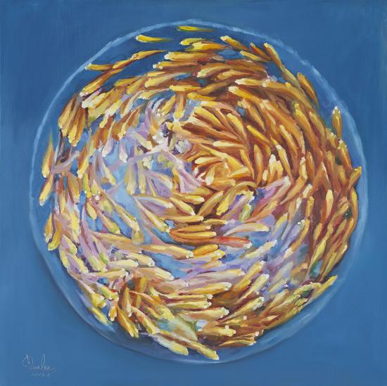 艺术家前宾以艺术的名义参进了放生的表达。他选择“鱼”作为再现对象,用感性形象化的方式将真实呈现出来,而放生这一概念的加入,使我们更好地感受行动背后的真理,或者是说,我们在看到前宾的艺术时,能更好地理解放生的真理以便于想象。本次《放生计划》展览中,我们不仅能看到艺术家作品中所表现的或欢乐或挣扎的鱼,并且在现场也将放置鱼以与观者互动,体验放生之意。而最终,它们都将回归温榆河,漂洗干净,还原真身。在整个展览中,前宾的艺术强化了放生的氛围,使展览更富有感染力。