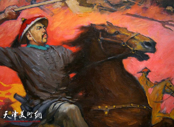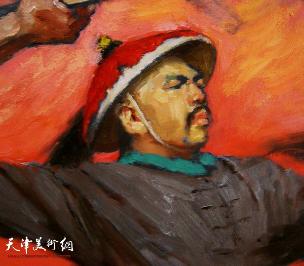 王书朋何莉油画作品《百年风云》原稿局部右。