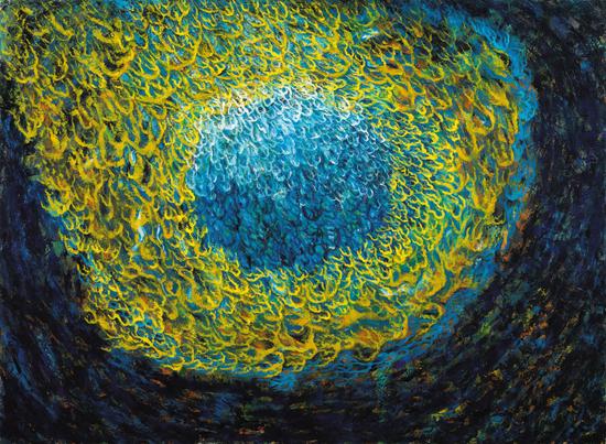 初读王冰的画作,便被她作品的光影色彩、线条符号所震撼。再读,与画共鸣,与美共舞。美是一种感悟,我无法形容色彩与意象结合的完美,正如无法描述内容形式与审美的和谐。物质的陈列、技法的运用只是展现美的手段,唯有灵与爱才能抒发美的由衷。因此,除了赞叹持之以恒的作画精神,更为其伟大的天赋所折服。若生命因历程而独特,画作便因灵爱而永恒。感悟冥冥之中的一双手,执握画笔,挥洒心中所悟。搁笔至此,画中流淌着永不消逝的挚爱以及不眠不休的孤寂。似火与冰无法调解却又自然融合,这种矛盾遍历了生之来路与命之归途,使我们不得不重新审度自我。