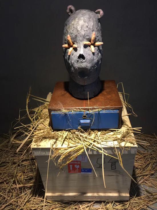 作品《保持缄默》艺术家刻意的留下的创作痕迹和线条会让人感觉手感比较重,但八只手指及旧的铁抽屉部分,细腻的表现出艺术家想要拨开旧的壳得到新生,那种破茧重生的创作概念。