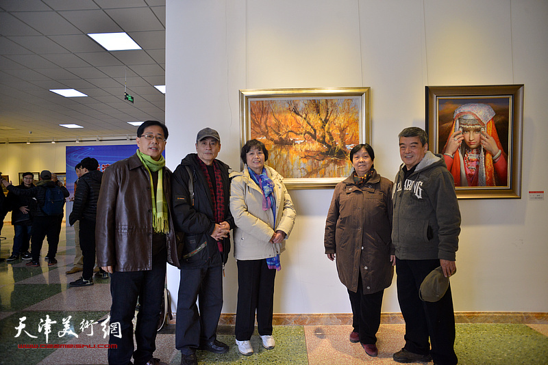 张树德、吴薇、郭凤祥、刘莉莉、杨倩等在画展现场。