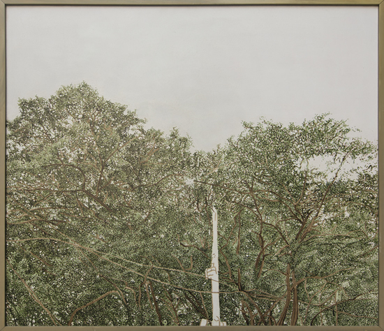 我觉得,王海龙从对风景,尤其是植被、树木的研究逐渐延展出他的一套认知系统。他将树符号化了,拟人化了,以及意识形态化了。这背后所连接的是他对于文明的整一性思考以及对于现代性的警惕。策展人安塞姆·弗兰克(Anselm Franke)策划的“万物有灵”展提出,有生命的(animate)的物与无生命的(inanimate)物、主体与客体之间的界限,本来就不是自然存在的,因此他借用万物有灵这一认为自然与文化不存在界限的所谓“前现代”的世界观来提示出对现代性世界种种分界的探讨和审视。在某种程度上,王海龙的思考与之有暗合之处。但他不是纯理论的探讨,他不断以其欲望动力作引擎,启动其艺术实践。在他的世界里,平面与立体,形色的图绘系统与现成品的物质属性,原始灵性与电子虚拟,文明与自然,时间、空间与质量等之间都是相互关联的,咬合的方式则带有他个人的鲜明色彩。他随性而为,却又为我们认知绘画、认知风景以及认知现今这个日益撕裂的世界提供了别具意味的个体经验。