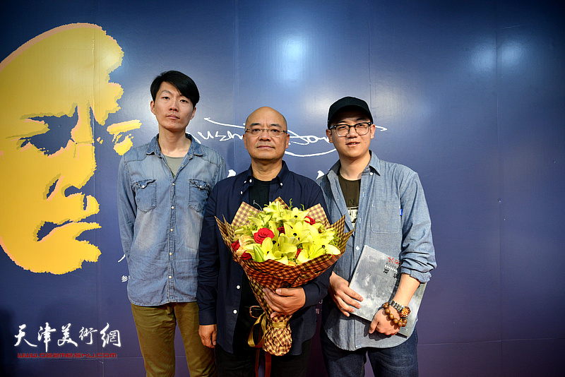 于小冬、李砾、闫宝云在画展现场。