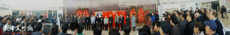 《谢雍八十书法回顾展》26日在塘沽博物馆开幕,图为开幕式。