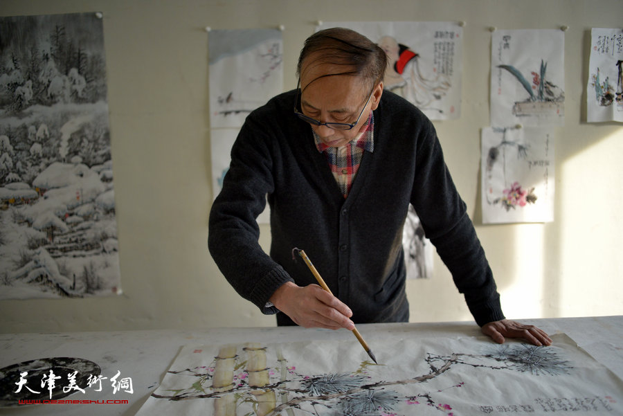 张学强、李学亮工作室入住翰墨东方文化艺术中心。图为张学强在工作室作画。