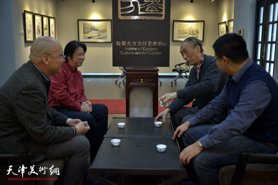 张学强、李学亮工作室入住翰墨东方文化艺术中心。图为张学强、李学亮、王小波、王凤立在翰墨东方文化艺术中心。