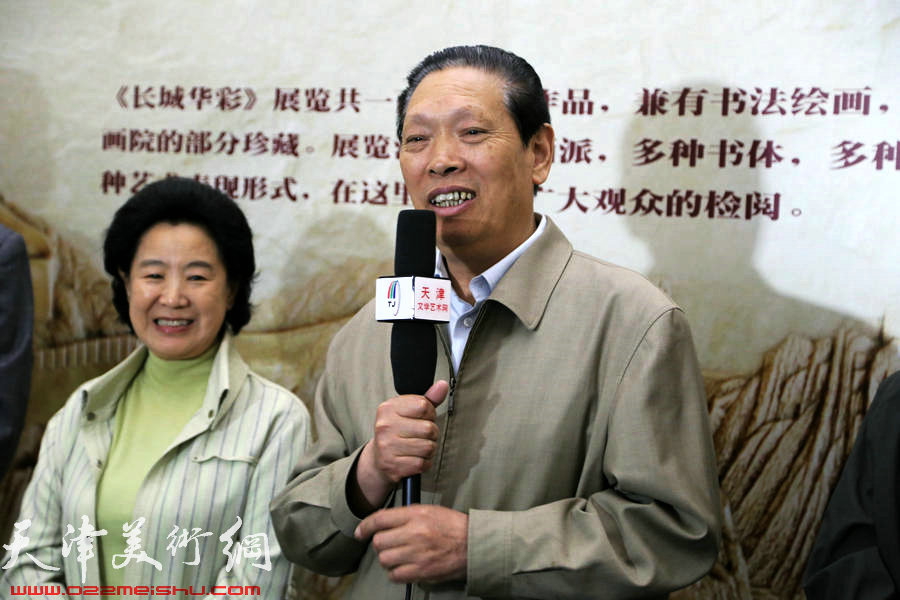 《长城华彩》书画展在天津图书馆举办,图为著名画家、长城书画院副院长孙长康讲话。