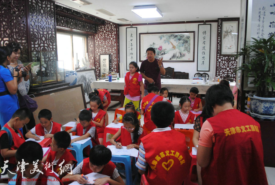 展览期间画家魏瑞江与观众交流并为观众绘画示范,同时受天津市美术家协会委派为苗苗义工的小朋友们举办公益讲座传授美术文化。