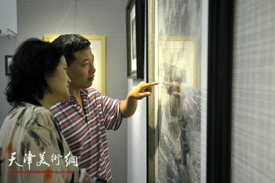 天津首届钢笔画学术展暨天津第二届钢笔画论坛开幕,图为出席首日展的来宾与部分作者。