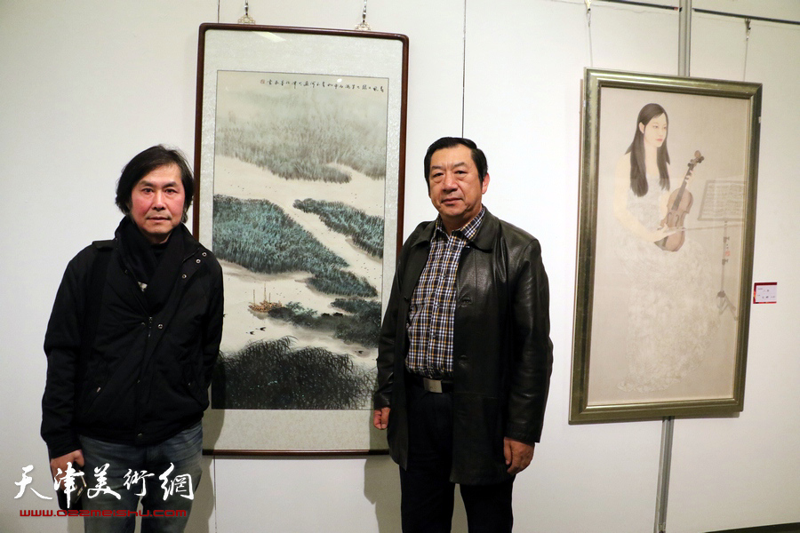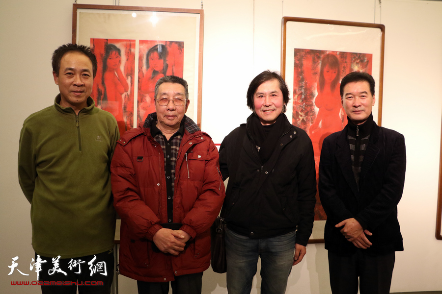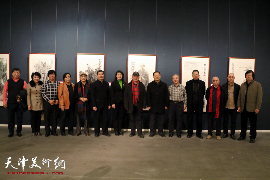 天津市委宣传部副部长石刚,天津文联党组书记、常务副主席万镜明,天津市美术家协会主席王书平,秘书长李耀春,中国书画报社社长何东,天津美术馆馆长马驰,天津市美术家协会办公室主任孙瑜,展览部主任张福有在展览现场。