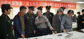 天津美术网讯 今天(1月5日)上午,天津市美术家协会组织本市十余名画家走进和平区劝业场街道新津社区,开展“文化下社区,美术进万家”公益活动,为社区居民送上了一场丰富的文化大餐。天津市美术家协会主席王书平、天津市美术家协会副主席琚俊雄、天津市美术家协会秘书长李耀春、天津画院原副院长郭凤祥、著名画家皮志刚、高学年、史玉、孙玉河、赵俊山、陈之海、杨昆、张文亮等参加了此次活动。和平区政协副主席朱建元,和平区宣传部副部长、和平区文明办主任赵堃,劝业场街道党工委副书记街道办事处主任刘红津,劝业场街道党工委副书记万友山,劝业场街道新津社区党委书记、居委会主任魏桐珠,以及社区广大书画爱好者现场近距离观看了画家们挥毫过程,并与他们开展创作,交流心得。