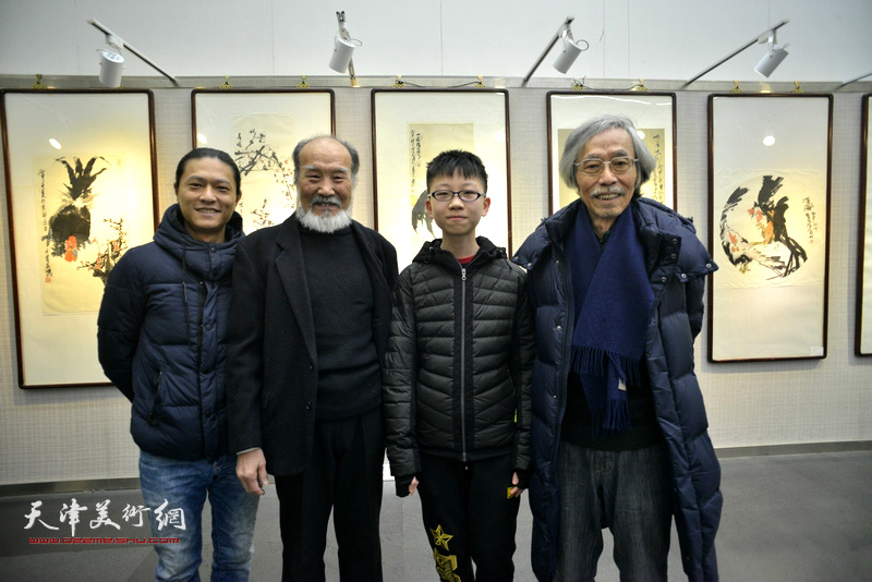贾宝珉、谢梦、杨俊玲、李大光在画展现场。
