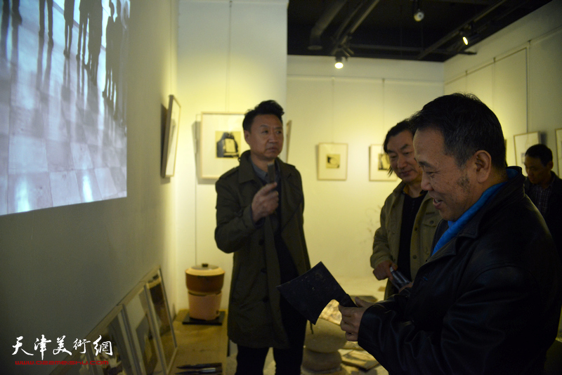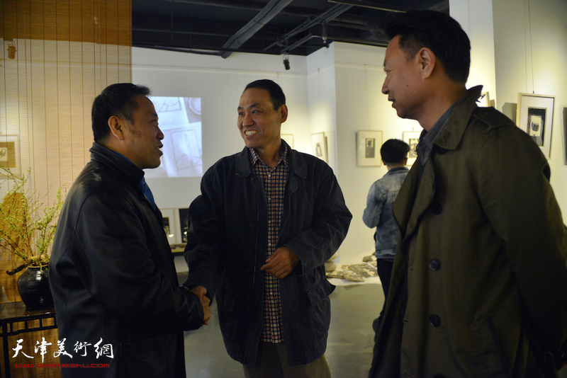 卢龙与阎秉会、李旺、杜志刚在展览现场交流。