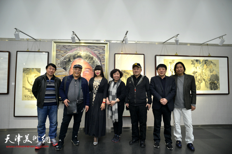 张树德、吴薇、郝跃先、王红、主云龙、王晓曦、焦小红在画展现场。
