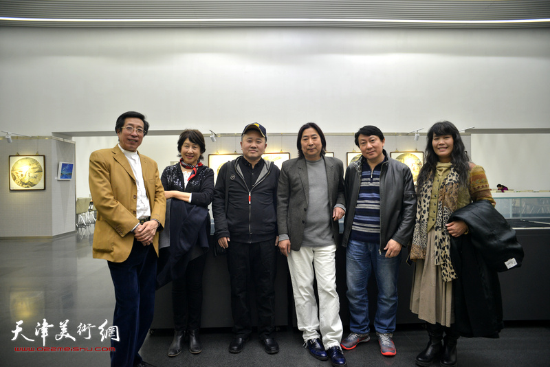 左起:于连水、乐乃康、张新佳、杨亦谦、主云龙、刘莉莉在画展现场。