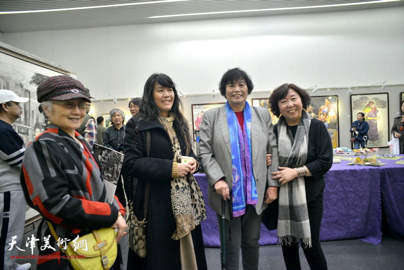 吴薇、何莉、焦小红、刘莉莉在画展现场。