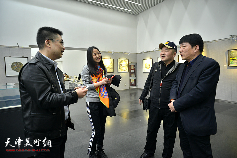 高维星、郝跃先、张新佳、李克文在画展现场观看作品。