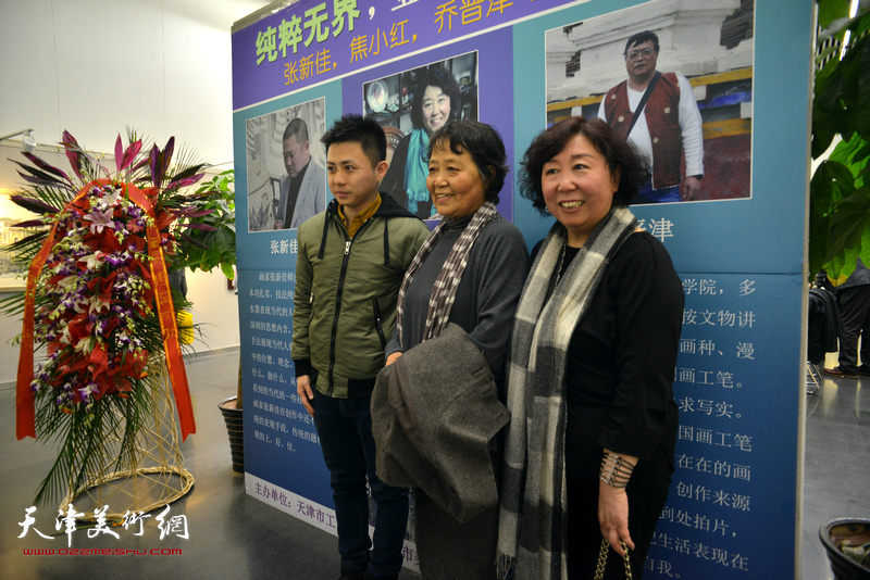 参展画家乔晋津、焦小红、张新佳在画展现场。