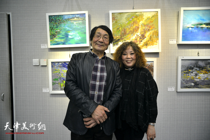 高维星、肖冰在画展现场。