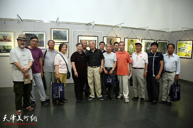 左起:曹国璋、余传生、高晓英、王书朋、王大奇、多莉君、王文华、孙敬山、张树德、张礼军、吴薇、王志毅、王春山、武颖萍、刘季雨在画展现场。