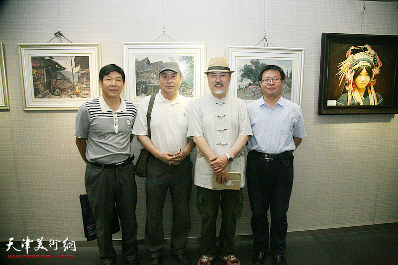 左起:房树常、张寿庠、黄宗瑞、张礼军在画展现场。