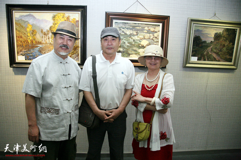 左起:高晓英、王书朋、耿尚武在画展现场。