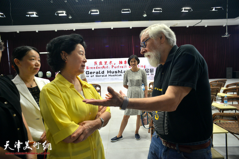 Gerald Hushlak与来宾在展览现场交谈。
