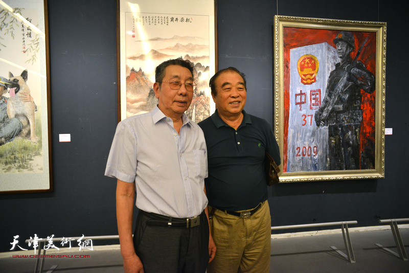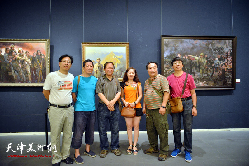 庆祝中国人民解放军建军90周年天津市美术作品展今天(8月1日)在天津美术馆开展,天津市美术家协会主席王书平与部分参展画家在画展现场。