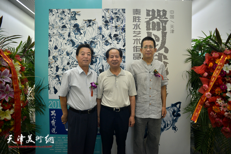 中国美术家协会理论委员会主任、《美术》杂志社执行主编、著名理论家尚辉,天津市委宣传部原副部长、市文化局书记、局长方伯敬,天津市委宣传部文明办主任张志辉,安徽省人民政府驻津办事处主任朱伟,天津市美术家协会名誉主席吴燃,天津画院原院长王峰,中国美术家协会中国画艺委会委员、天津市美术家协会副主席、天津人民美术出版社社长李毅峰,天津市美术家协会副主席史振岭,天津市美术家协会副秘书长潘津生,天津市美术家协会展览部主任张福有,天津市消防总队原总队长、全国公安美协副主席王子岗,天津美院教授、硕士生导师张耀来,中国书画报社党工办主任马江红,天津市安徽商会会长张长江,秘书长张金铎,中国文物学会收藏鉴定委员会天津工作站站长张桂芳,天津“商机”杂志社主任马风华、总编辑穆秀玲,东丽区书法协会主席邢纪庆,天津图书馆展览部负责人高原春,天津渤海美院、霍春阳传统绘画艺术研究室助教董玉山,安徽人家总经理李加强,天津青之阳建筑装饰工程公司总经理秦加顺,天津北丰物流有限公司总经理孙宗成,天津鹏安数讯科技公司总经理唐永彪,天津电通建筑工程公司总经理张友才,天津铁阳集团总经理孙万兴,天津华北建筑集团总经理韩立彦,画家柴博森、田军、李伟,以及社会各界美术爱好者100余人参加了此次展览开幕互动。“器以载道-秦胜水艺术作品巡展(天津站)”开幕式由天津文联办公室杨建国主持。