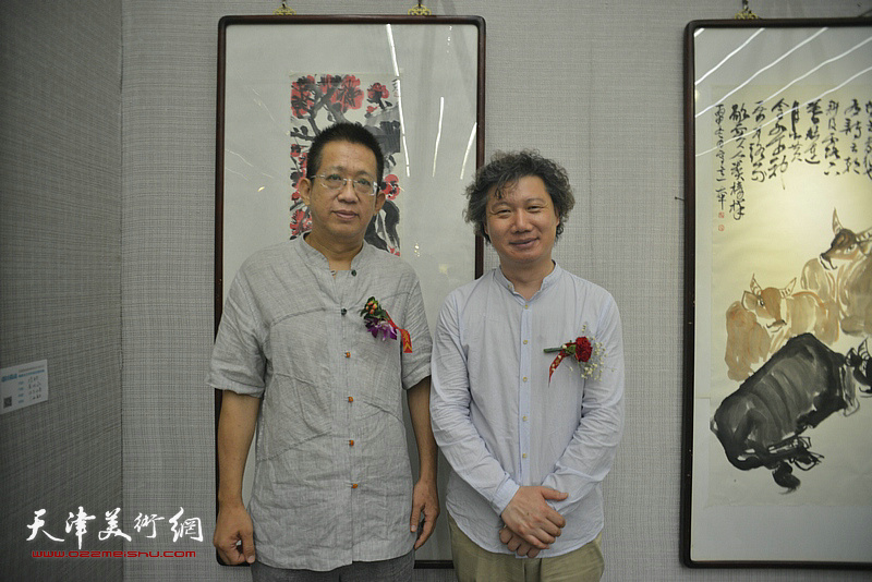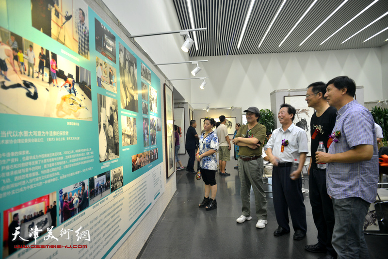 吴燃、王峰、尚辉、李毅峰、秦胜水在画展现场。