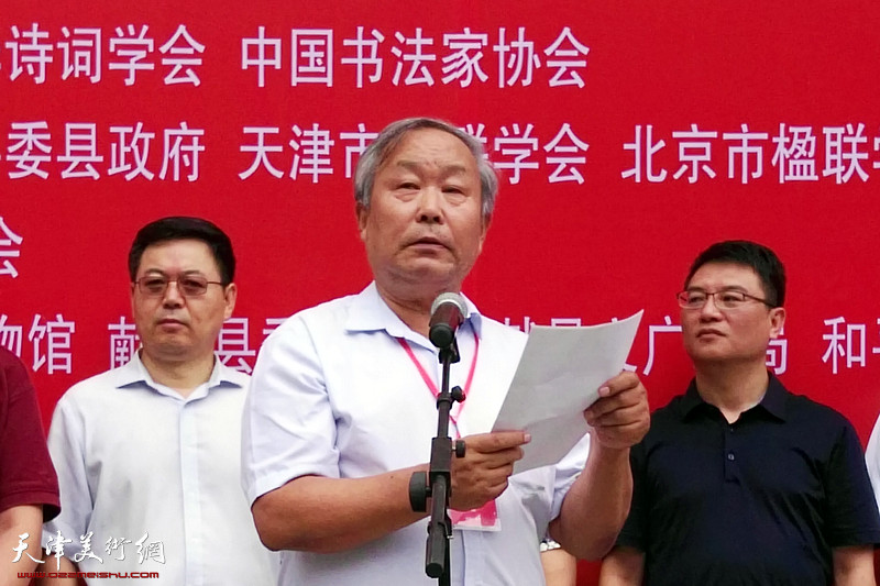天津市楹联学会会长、中国楹联博物馆馆长陈伟明主持展览开幕式,并宣读贺诗、贺联。