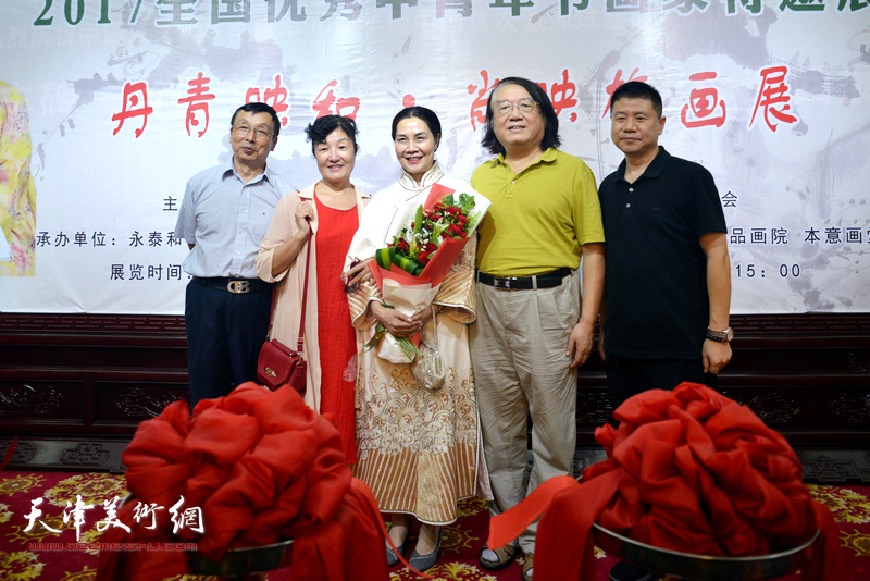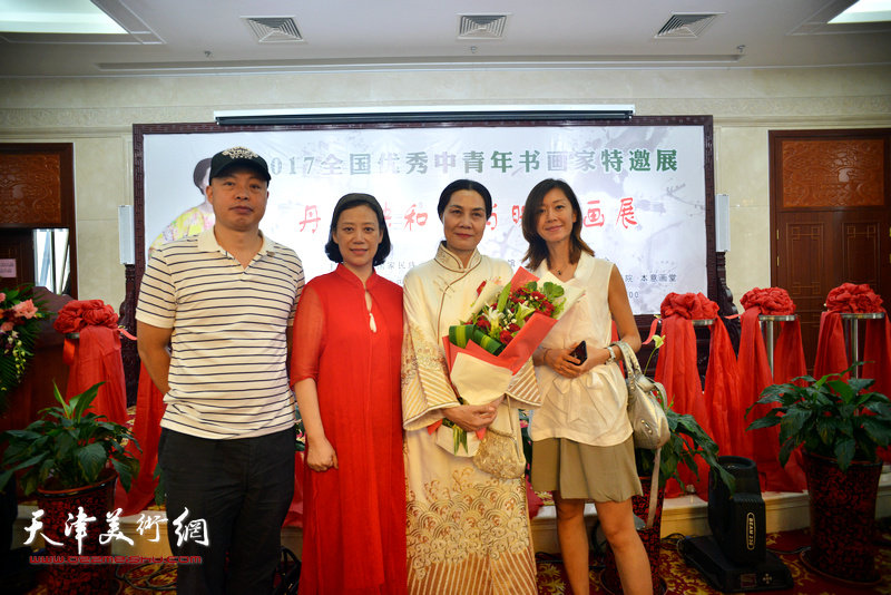 肖映梅与侯立远、邱辉、朱晏彬在画展现场。
