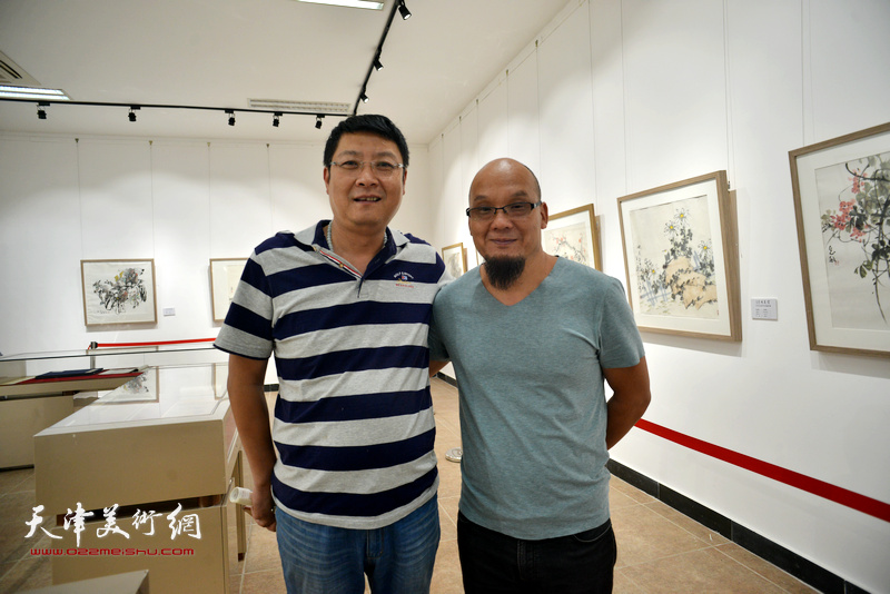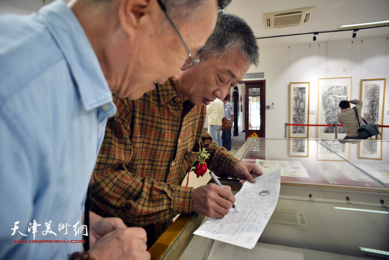 张亚光、戴世隆、张明光、王忠、安士胜等在画展现场。