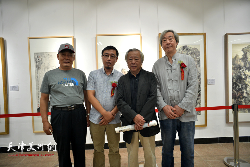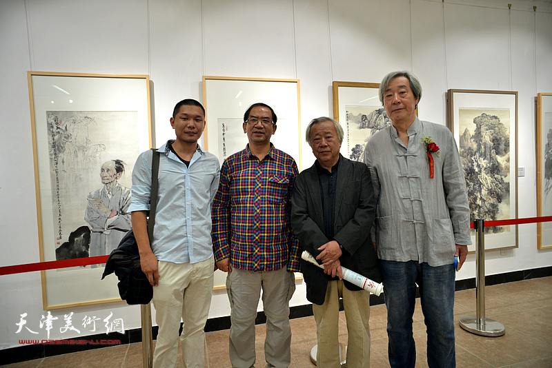 左起:王忠、张枕石、阮克敏、张亚光在画展现场。