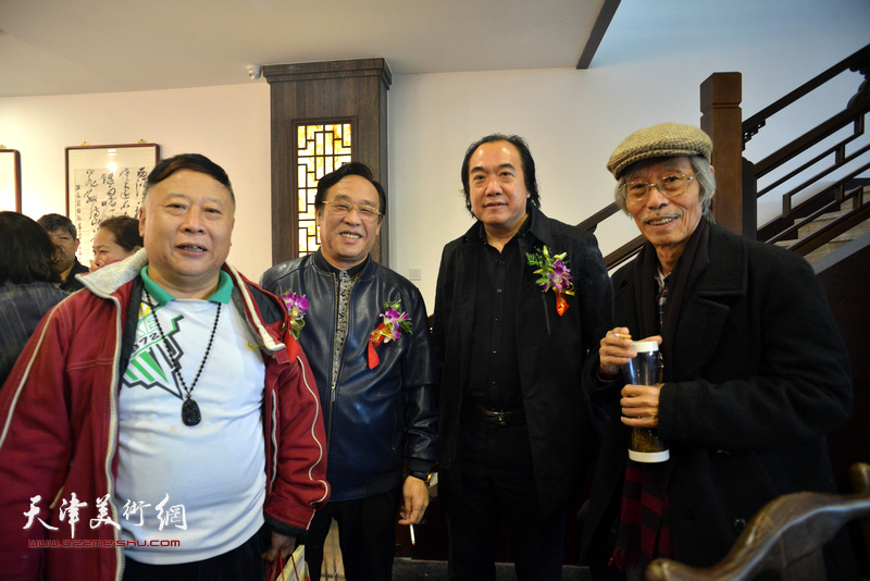 左起:张运河、崔燕萍、马寒松、陈钢在画展现场。