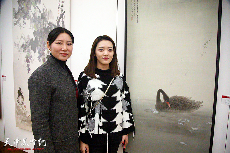 赵红云、赵扬在画展现场。