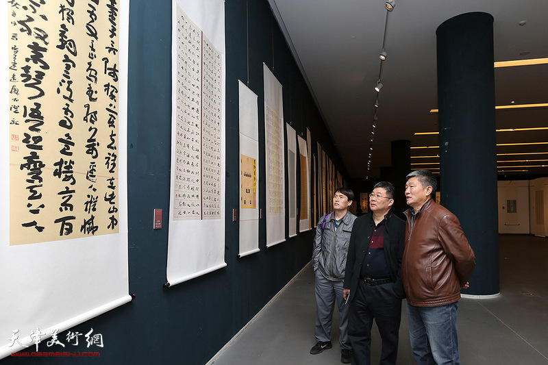 窦宝铁、李延春、赵辉在展览现场观看作品。