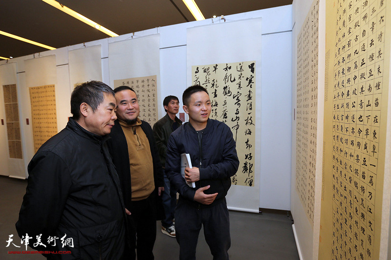天津市书法家协会副主席任长文与参展作者在展览现场。