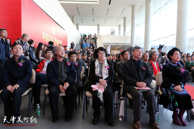 中国美术家协会副主席吴长江,中国民间文艺家协会顾问、原分党组书记罗杨,中国艺术报原总编辑李树生,中国文联原离退休干部局局长郑惠林,天津市人大常委会原副主任左明,天津市政协原副主席、天津市慈善协会会长曹秀荣,天津市文联党组成员、秘书长商移山,天津市文联副主席、天津市美术家协会主席王书平,中国书法家协会副主席、天津市文联副主席、天津市书法家协会常务副主席张建会,天津市群众艺术馆馆长李戈,滨海新区宣传部副部长何延琥,深圳市金一百艺术品股份有限公司、翰墨卢浮宫董事长褚永军共同为展览启幕。