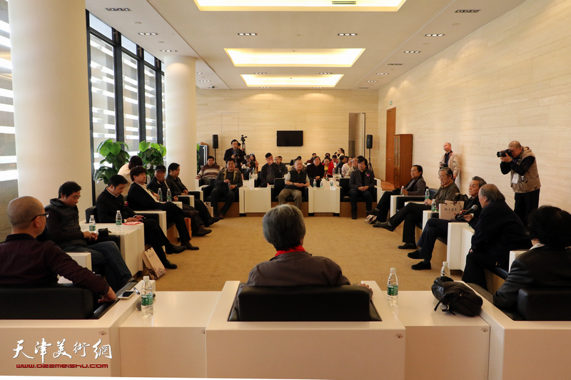 “王欢来意象彩墨书画艺术回乡展研讨会”由天津美术馆馆长马驰主持。