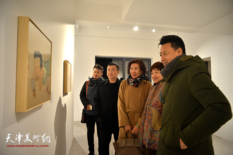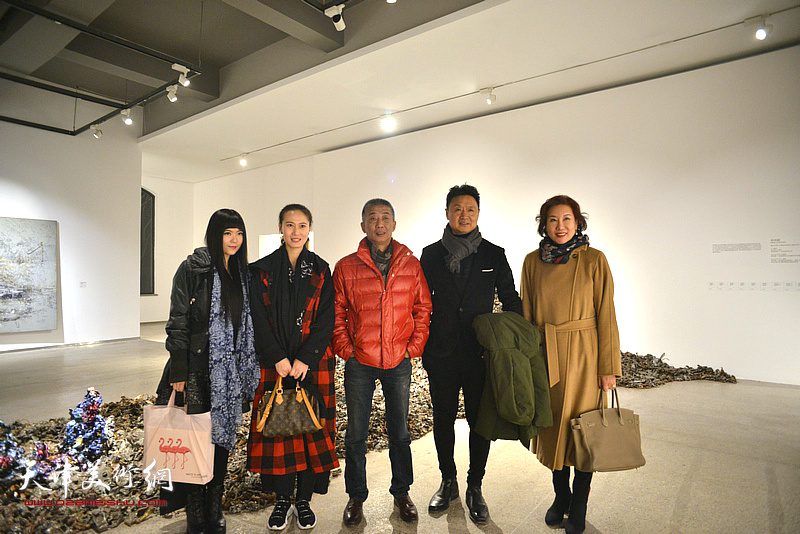 邓国源与蔚县县委宣传部常务副部长赵宏永、蔚县新图景文化产业发展有限公司经理闫东波、艺术家边静在画展现场。