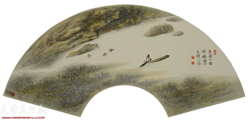 王心刚扇面作品:多情只有闲鸥鹭
